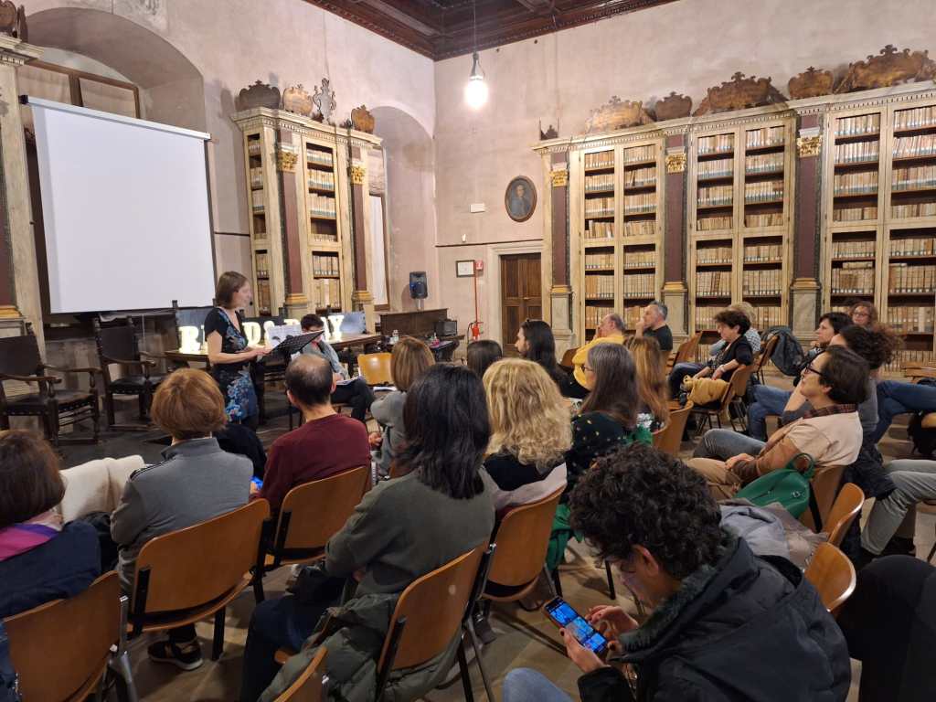 Ho preso il pranzo da portare via, mangiato, trucco, parrucco, un’ultima lettura della ia narrazione e via, verso la Biblioteca Planettiana.