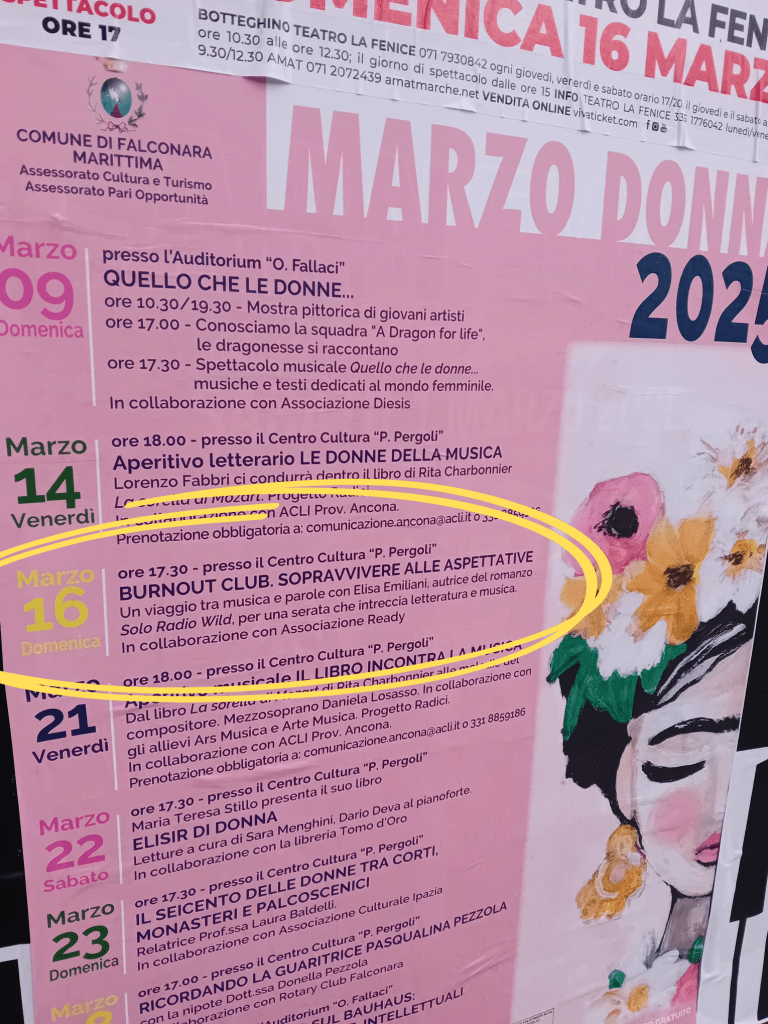 La sera del venerdì sono stata accolta dal favoloso gruppo di lettura di Civitanova, nello splendido Ceffé del Teatro Cerolini, dove abbiamo chiacchierato di millennial, di aspettative, di relazioni fluide e sensi di colpa, ma anche di arte e dell’importanza di seguire quella voce che ti dice di andare avanti, nonostante tutto.