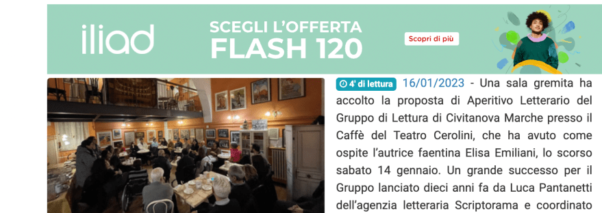 Grande successo per l'Aperitivo Letterario, l'autrice Elisa Emiliani "questa serata mi ha arricchito di esperienze ed emozioni" Link all'articolo