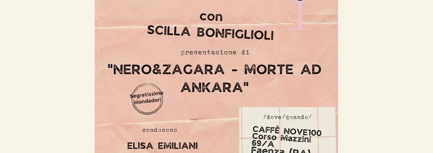 Vino, libri e scrittrici? Li abbiamo tutti e tre: raggiungeteci giovedì 17 novembre al caffè Nove100 di Faenza (RA), ore 19.30, per parlare insieme all'autrice bolognese Scilla Bonfiglioli dei suoi ultimi romanzi! "Nero&Zagara - Morte ad Ankara" è una spy story di freschissima uscita per la collana Segretissimo di Mondadori. "La bambina il nazista" è… Continua a leggere Aperitivo letterario con Scilla Bonfiglioli
